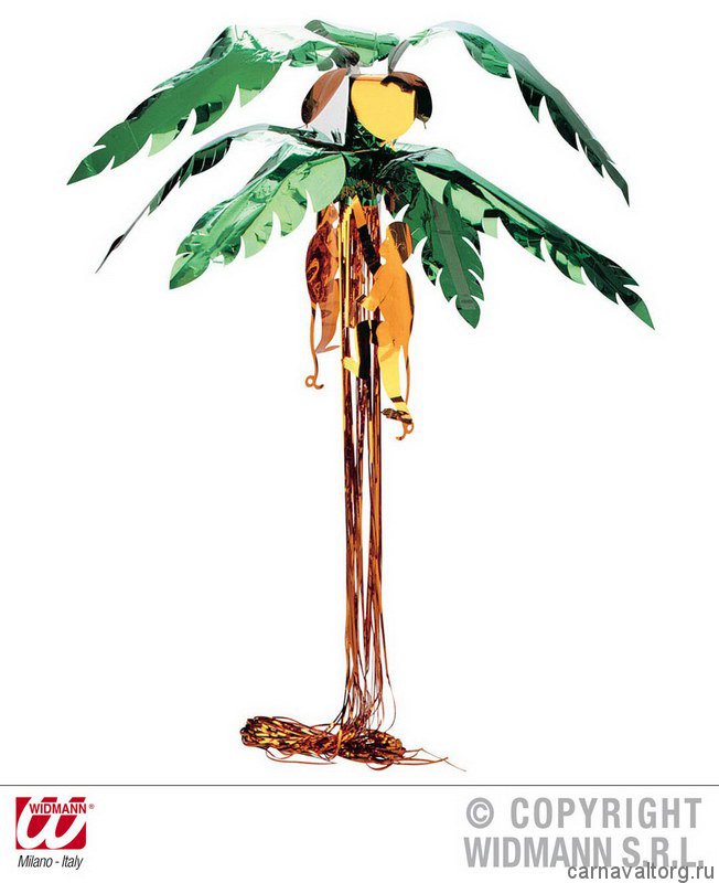 Подвесная декорация для праздника, пальма с кокосами и мартышками, материал металлизированная фольга, размеры 275 см. Бренд производителя: WIDMANN, Италия.