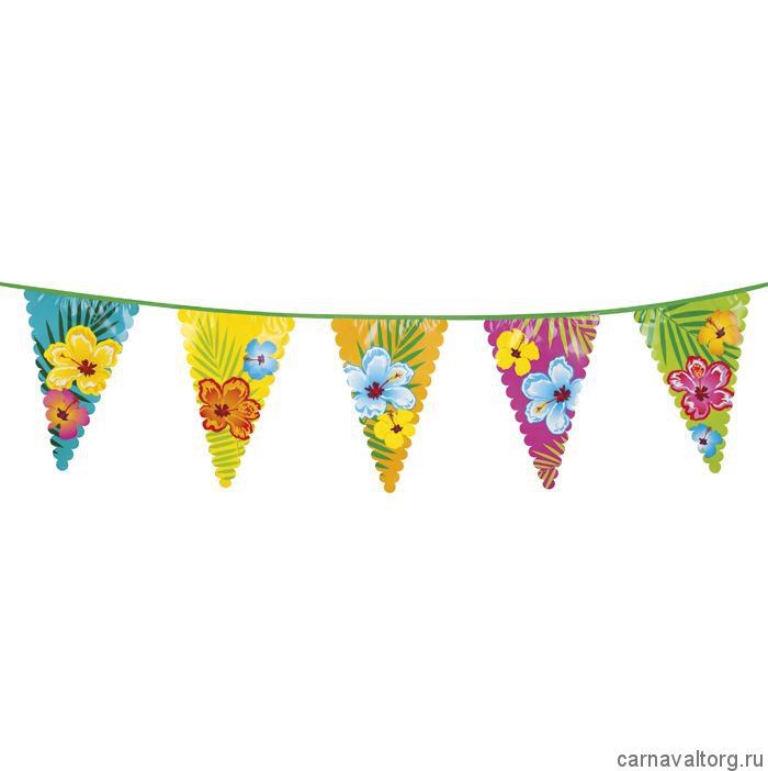 Гирлянда вымпелы "Гавайская" 1 шт. Размер флажков 30 х 45 см. Длина гирлянды 6 метров. Материал: полиэтилен. Бренд производителя: Нидерланды.