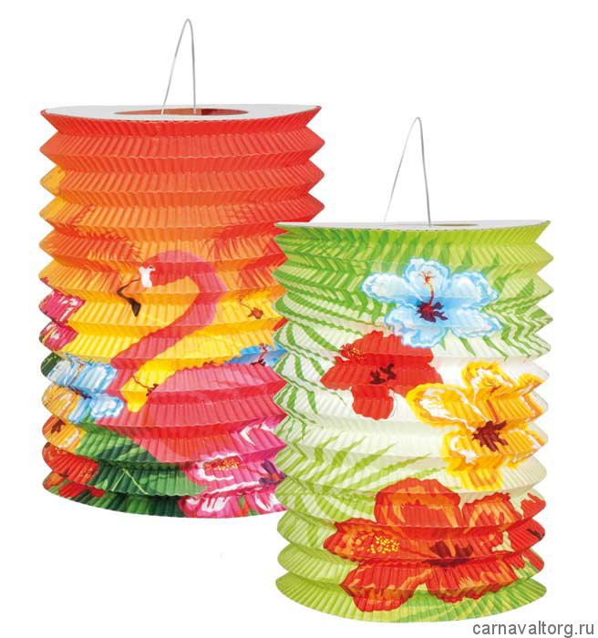 Фонарики "Гавайи" 2 шт., бумажные, складные. Внутрь можно вставлять свечу (в комплект не входит). Диаметр 16 см. Материал: бумага.