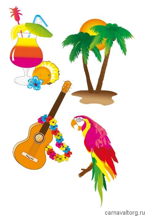 Декорации "Гавайи" набор 4 шт. Размер 36 х 25 см. Материал: картон.