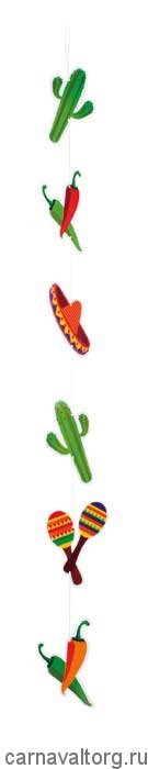 Украшение подвесное "Фиеста" - 6 фигур, двусторонние. Длина 140 см. Материал: картон.