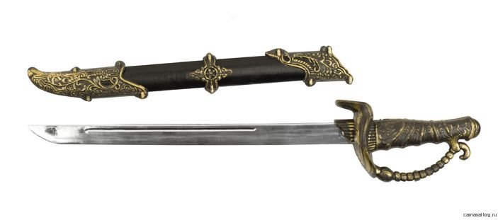 Сабля пирата с ножнами, длина 52 см. Материал: пластик.