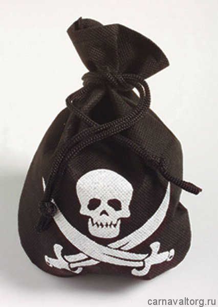 Мешочек бархатный пиратский с черепом и шнурком - для золотых монет. Бренд производителя: WIDMANN, Италия.