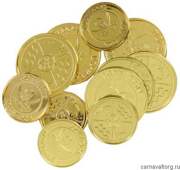 Золотые дублоны - бутафорские старинные монеты для пиратов, 12 шт. Материал: пластик. Бренд производителя: WIDMANN, Италия.