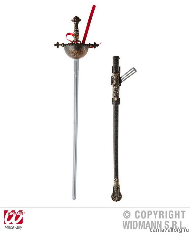 Рапира с ножнами и декором, бутафория, материал металл, пластик, размер 68 см. Бренд производителя: WIDMANN, Италия.