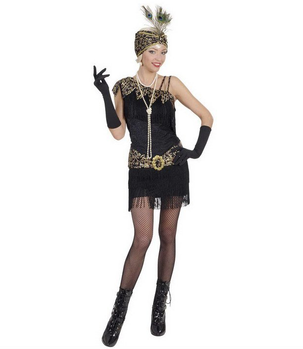 Костюм карнавальный "20-е Флаппер Делюкс": эффектное платье с поясом и пряжкой, головной убор с пером павлина. Остальные аксессуары показаны на фото для полноты и красочности образа, и в комплект не входят, вы найдете их в разделе нашего сайта Аксессуары. Размеры: S, M, L (наличие показывается автоматически) Бренд производителя: WIDMANN, Италия. Материалы: синтетика и натуральные ткани.