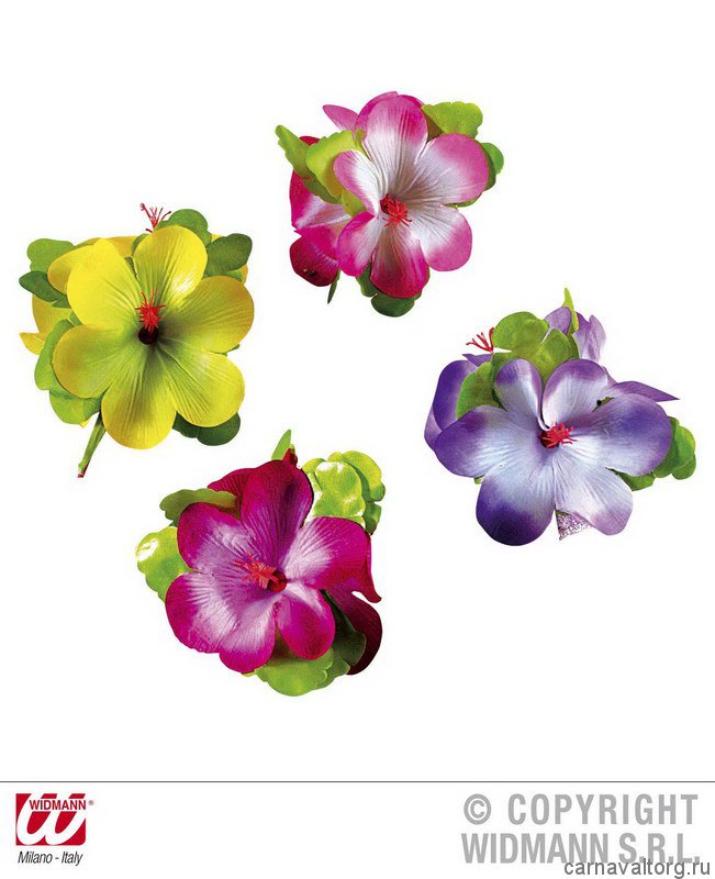 Заколка "Гибискус" в гавайском стиле. В ассортименте 4 цвета - пожалуйста, если имеет значение, укажите в примечании к заказу желаемый цвет! Материал пластик, синтетика. Бренд производителя: WIDMANN, Италия.