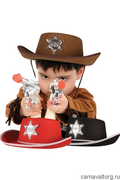 Шляпа "Шериф" детская ассорти. Цвета в ассортименте: красный, черный, коричневый. Размер: один. Материал: синтетика.