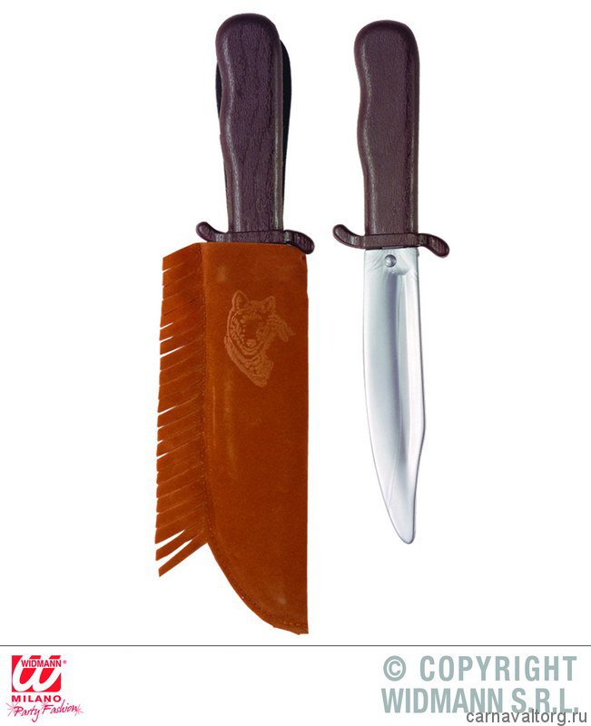 Индейский нож в замшевых ножнах бутафория, материал пластик и иск. замша. Длина 27 см. Бренд производителя: WIDMANN, Италия.
