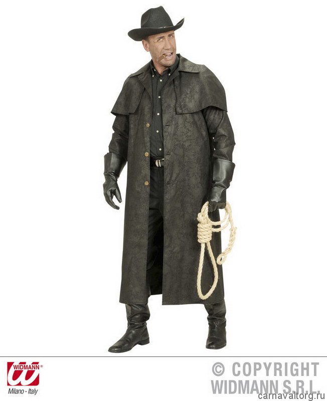 Длинное кожаное пальто дастер - любимая одежда ковбоев Дикого Запада! Комплектация: пальто, материал синтетика, кож. зам. Размер плюс - XL (56-60) Остальные аксессуары показаны на фото для полноты и красочности образа, и в комплект не входят, вы найдете их в разделе нашего сайта Аксессуары. Бренд производителя: WIDMANN, Италия.