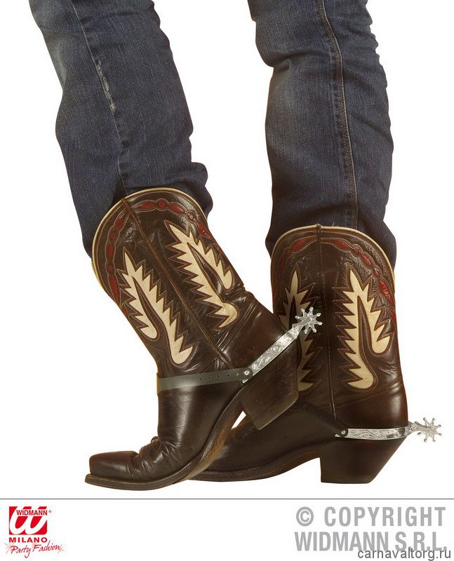 Шпоры ковбойские на сапоги, имитация, аксессуар для карнавального костюма. В комплекте 1 пара шпор. Бренд производителя: WIDMANN, Италия.