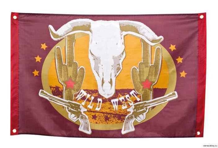 Флаг растяжка "Дикий Запад" 1 шт. Размер 90 х 60 см. На баннере 4 металлических люверса для крепления. Материал: ткань полиэстер.