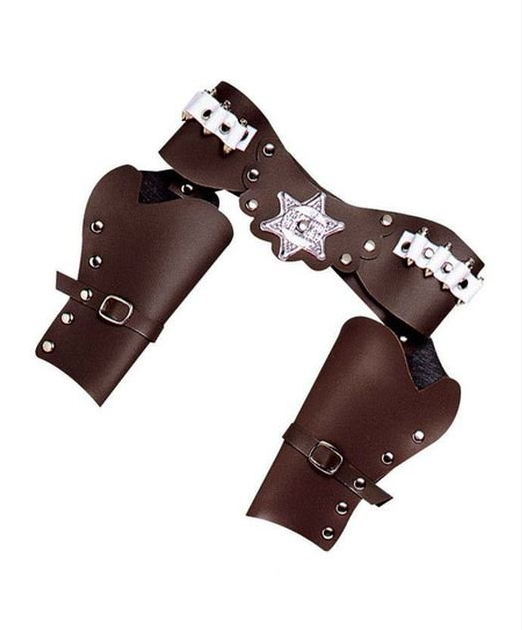 Двойная кобура - две кобуры на ремне с металлическим декором, бутафория, аксессуар для карнавального костюма. Комплект: две кобуры, ремень с пряжкой, патроны в патронташе на ремне. Материал: кожзам. Бренд производителя: WIDMANN, Италия.