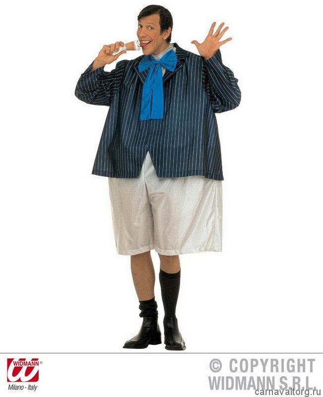 Объемный карнавальный костюм из серии "Веселые толстяки" от Видманн! Комплектация костюма: комбинезон на обруче, пиджак, гигантский галстук. Остальные аксессуары показаны на фото для полноты и красочности образа, и в комплект не входят, вы найдете их в разделе нашего сайта Аксессуары. Размер один, стандартный. Бренд производителя: WIDMANN, Италия.