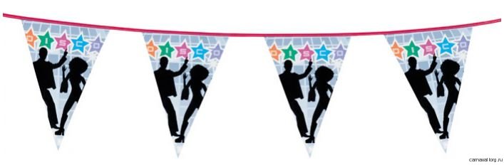 Гирлянда вымпелы "Диско" 1 шт. Размер флажков 30 х 20 см. Длина гирлянды 6 метров. Материал: полиэтилен.