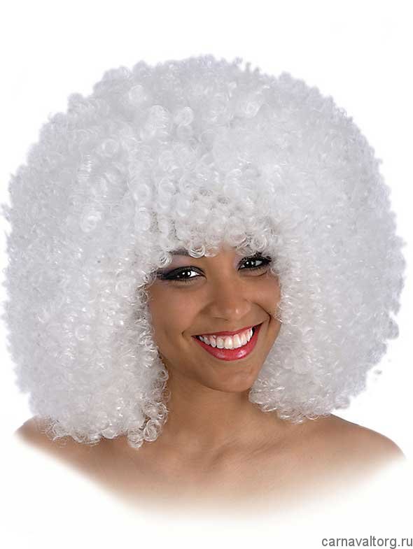 Парик "Супер Афро" белый, очень высокого качества пышный парик из искусственных волос. Материал: искусственные волосы, размер один стандартный. Производитель: Италия.
