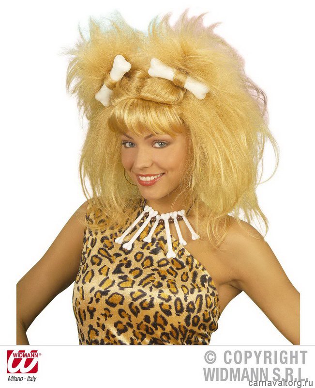 Парик "Пещерная женщина" с 2 костями в прическе в комплекте. Парик из искусственных волос высокого качества - натуральный вид! Бренд производителя: WIDMANN, Италия.