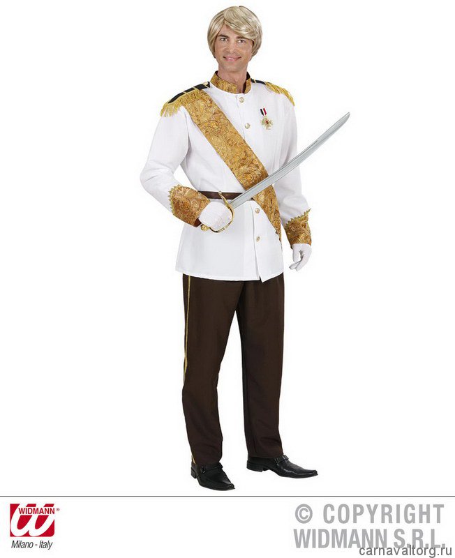 Комплектация костюма: пиджак, брюки, пояс, лента через плечо. Остальные аксессуары показаны на фото для полноты и красочности образа, и в комплект не входят, вы найдете их в разделе нашего сайта Аксессуары. Размеры: S, M, L (наличие показывается автоматически) Бренд производителя: WIDMANN, Италия. Материалы: синтетика и натуральные ткани.