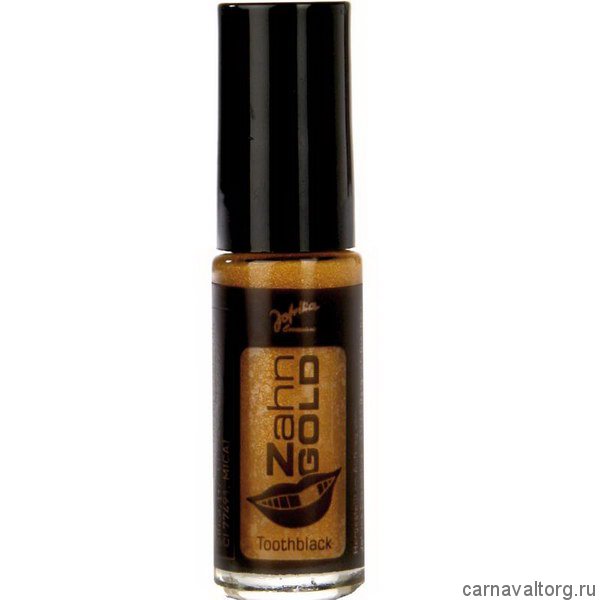 Краска "Золотой зуб" - краска черная для зубов, при нанесении получается эффект золотого зуба, оригинальный штрих для грима пирата или мафиози. Специальная краска, которая хорошо держится на зубной эмали. Производитель: Jofrika, Германия. Объем 5 мл