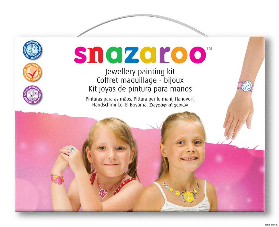 Новый набор от Snazaroo (Сназару) для детей и их родителей - яркие подарочные чемоданчики! Набор для девочек - рисуем украшения прямо на теле: красочные ожерелья, браслеты и часы! Подарочный набор: картонный подарочный чемоданчик с ручкой + 6 цветов аквагрима + спонж+ кисточка + буклет. Преимущества нового набора: Легко выполнить рисунок из буклета - идеально для начинающих! Интересные креативные идеи в буклете!