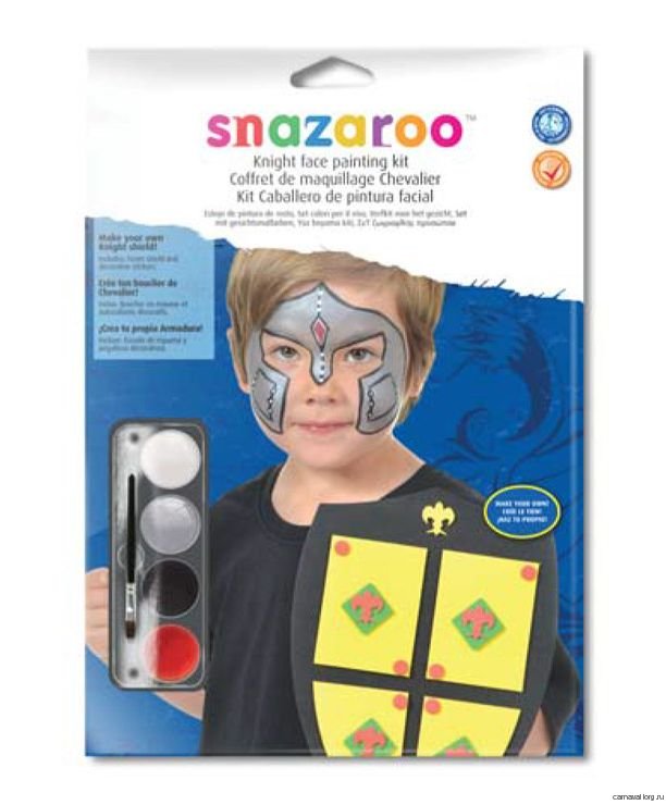Набор "Snazaroo Role-Play. Рыцарь", аквагрим + игрушки. Новый набор от Snazaroo (Сназару) для детей и их родителей - аквагрим + аксессуары для игры в пираты! 4 цвета аквагрима для дизайна пирата + кисточка + рыцарский щит + объемные стикеры для украшения. Преимущества нового набора: - Готовый образ рыцаря для мальчика - грим и аксессуары для игры! - Аксессуары и игрушки выполнены из мягкого безопасного пено-материала.