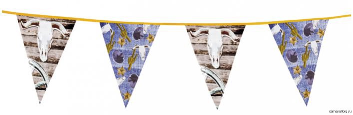 Гирлянда вымпелы "Дикий Запад" 1 шт. Размер флажков 30 х 20 см. Длина гирлянды 600 см. Материал: полиэтилен. Бренд производителя: Нидерланды.