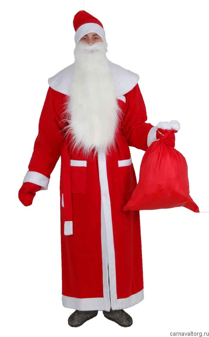 Костюм Деда Мороза: шуба, кушак, шапка, рукавицы, мешок. Материал - флис. Размер: 48-52 Рост: 160-190 см.