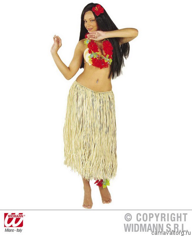 Юбка гавайская "Рафия" - из натуральных волокон пальмы рафия, длина 78 см. Размер один стандартный. Бренд производителя: WIDMANN, Италия.