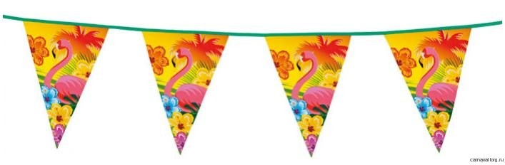 Гирлянда вымпелы "Гавайская" 1 шт. Размер флажков 30 х 20 см. Длина гирлянды 6 метров. Материал: полиэтилен.