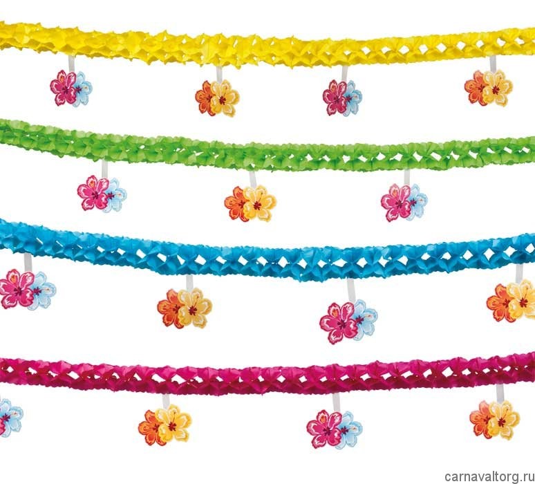 Гирлянда объемная "Гавайская" 1 шт., двусторонняя. Размер 400 см. Материал: бумага, картон ламинированный. В ассортименте 4 цвета: красная, желтая, синяя, зеленая. Цена указана за 1 гирлянду одного цвета. Бренд производителя: Нидерланды.
